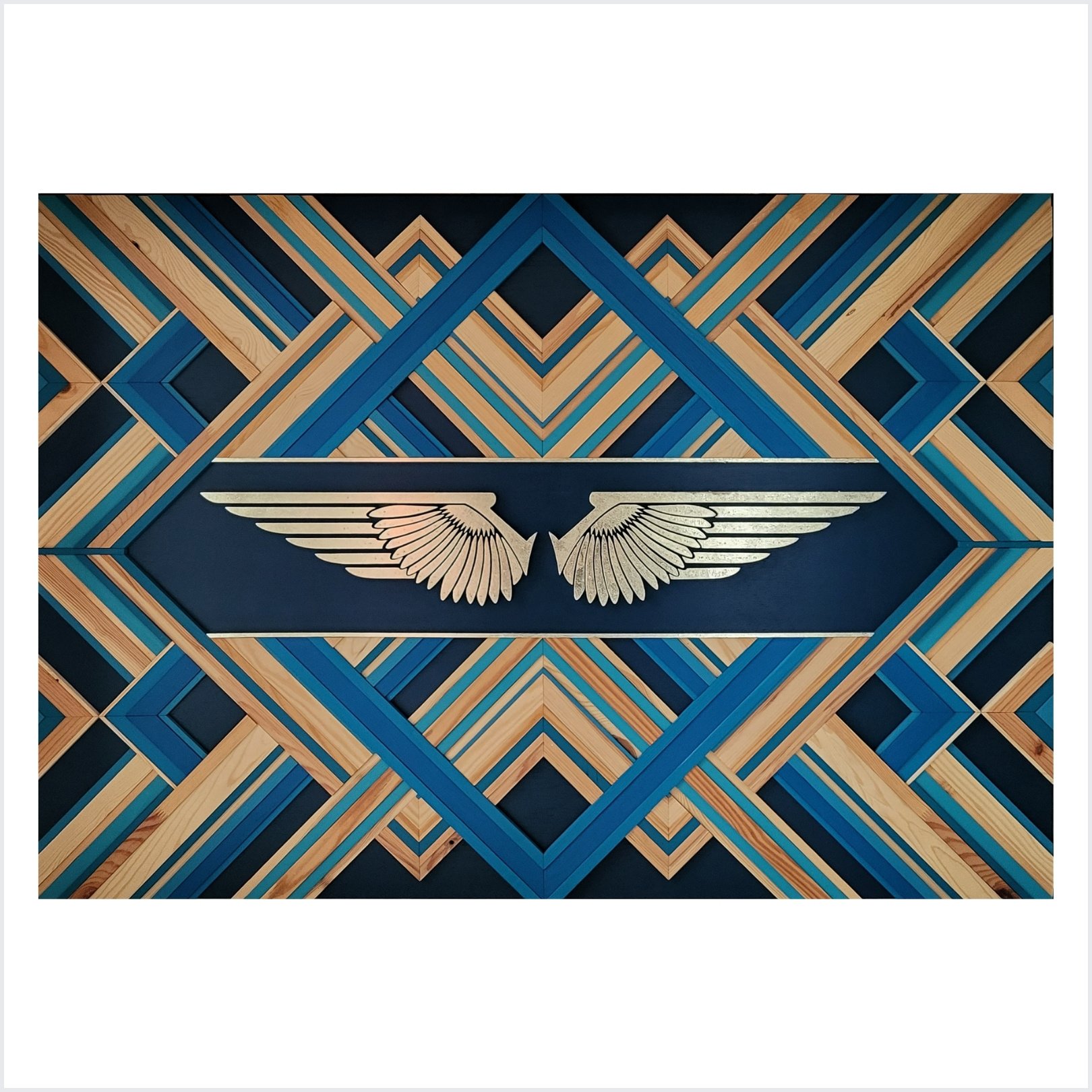 Wood is a natural product with unique grain, knots, holes and cracks. Along with wood purchased from hardware stores, recycled and reclaimed wood is also used wherever it can be found, and it could have old nail or screw holes left, as well as other quirks. All these unique qualities are intentionally incorporated into each art piece.